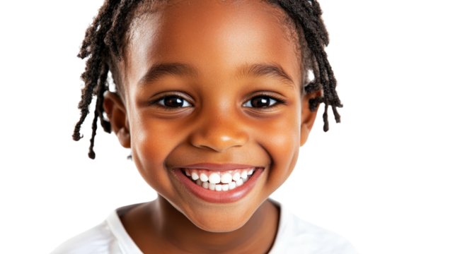 A close-up portrait of a happy kid, smiling and laughing with a playful expression, Transparent background, PNG file.