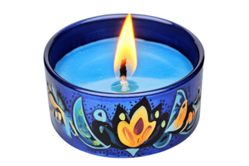 Beautiful wax candles, candles in glass holders isolated on transparent background