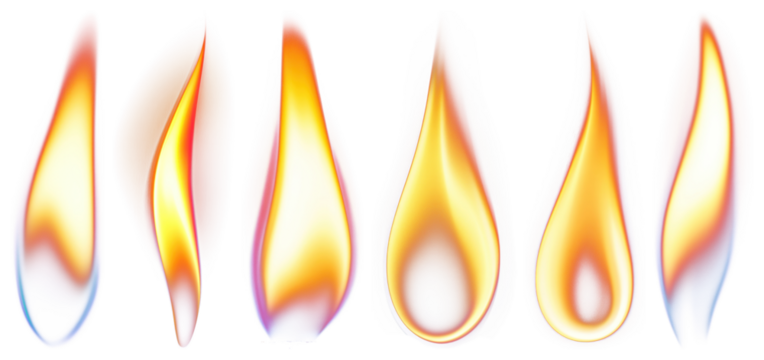 Candle fire flame on transparent background. Candle flame set isolated. Candle light set. Candle flames glowing brightly PNG