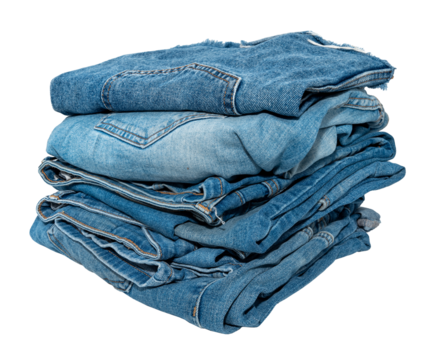 Stack of different jeans on a white background. Denim background texture for design. Canvas denim texture.