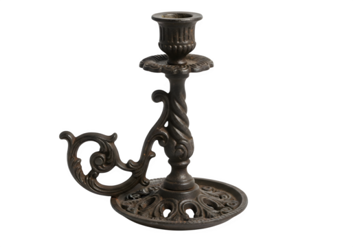 Antique metal candlestick holder, vintage style, decorative and elegant, isolated on transparent background