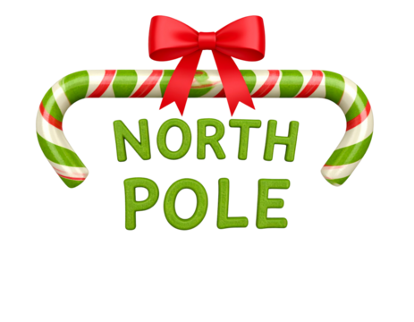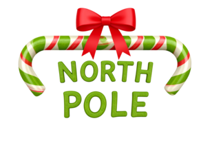 Festive Candy Cane Styled North Pole Sign with Bow, Isolated on Transparent Background