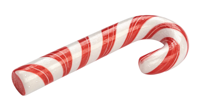 A vibrant, red and white striped candy cane, expertly crafted and placed against a transparent background, ideal for holiday-themed designs and seasonal decorations