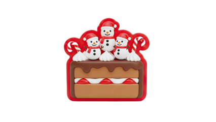 3D Cute Snowman Cake Christmas Decoration on transparent background