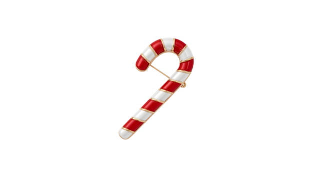 Red and white candy cane brooch pin with gold accents isolated on the transparent background for christmas holiday fashion accessories