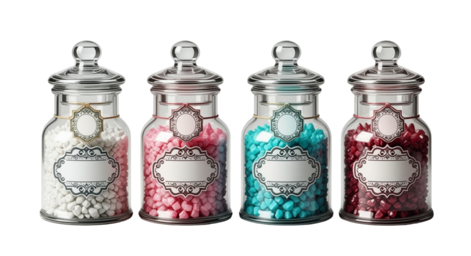 Jar of rock candy isolated on transparent background, a colorful and sugary treat