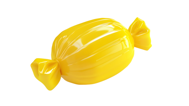 Yellow candy 3D render icon, glossy and delicious, cartoon minimal style, Transparent Background PNG