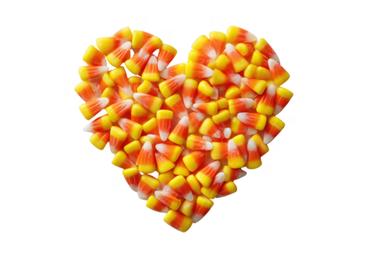 Heart shape made of candy corn pieces on white isolated on a transparent background sweet