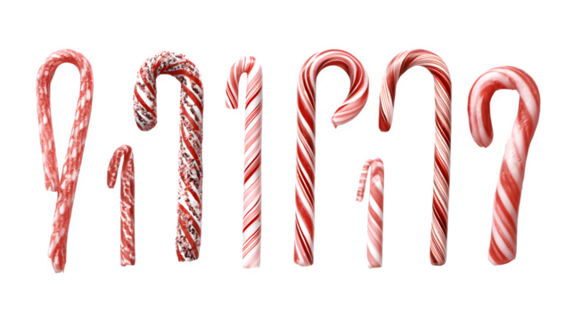 A candy cane featuring red and white stripes, prominently placed on a transparent background, capturing a Christmas vibe