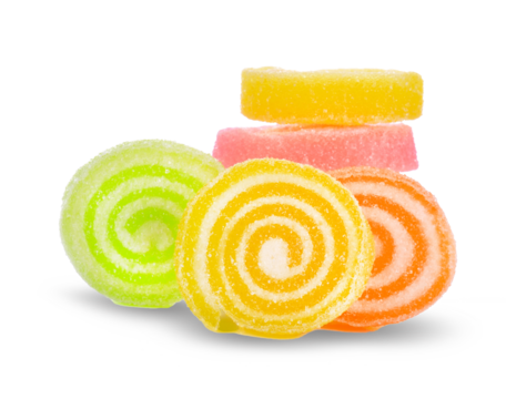 Jelly sweet, flavor fruit, candy dessert colorful on sugar on transparent.