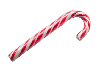 Red and white candy cane, sweet holiday treat, glossy, for festive backgrounds, product photography, and seasonal social media.