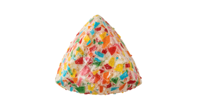 Vivid festive candy: colorful confectionery pyramid with glossy, multicolored candy pieces