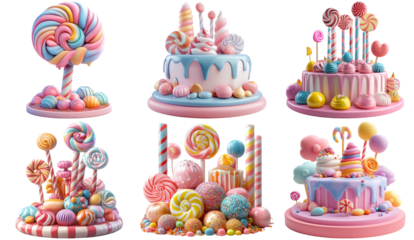 Festive candy shop display candyland digital colorful whimsical isolated on transparent background