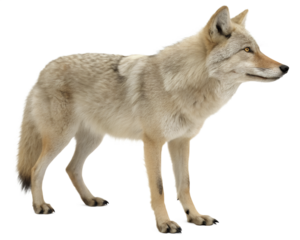 Standing Coyote with Light Brown Fur and Alert Expression.