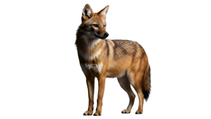 A standing wild canid with a bushy tail and elegant posture. transparent background