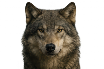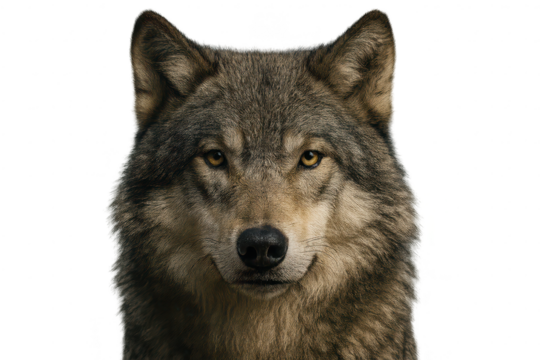 Portrait of a Wolf with transparent background, canid beast wildlife