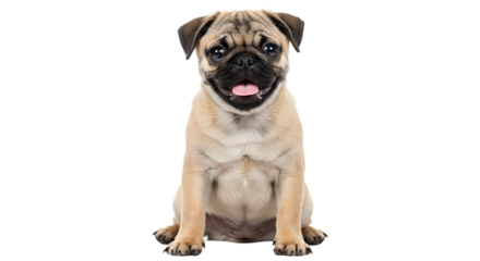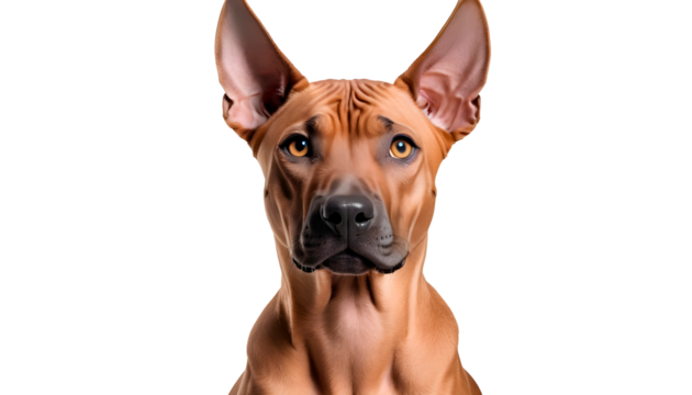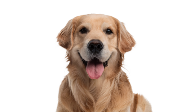Perro mirando hacia arriba con las orejas hacia atrás y fondo transparente