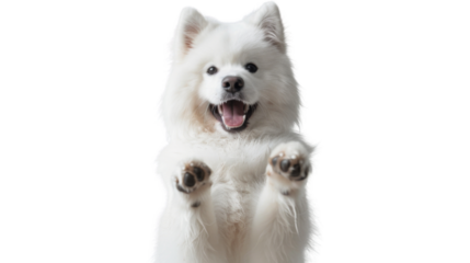 cute funny transparent pomeranians puppy dog lying on his back with paws up and waiting for belly rubs; doggy isolated on transparent background