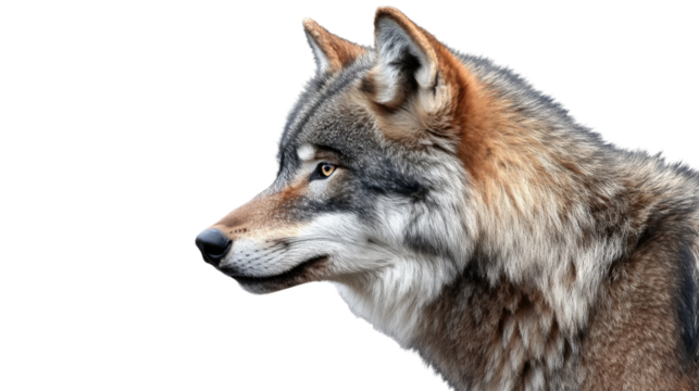 Majestic grey wolf on transparent background: wild dog with powerful posture.