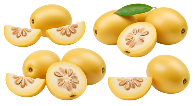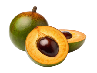 Yellow Sapote fruit isolated on a white transparent background, perfect for graphic design or food photography, showcasing the vibrant color and unique texture