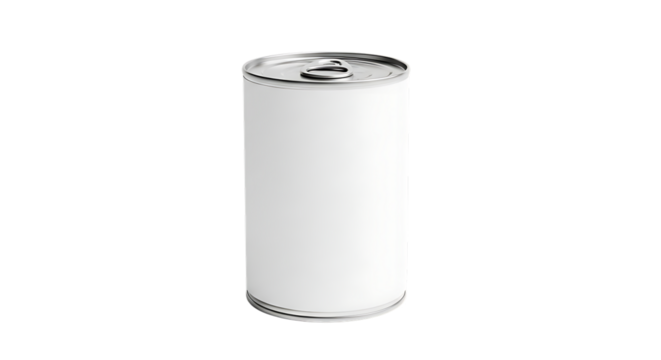 Silver metal food can isolated PNG, canned goods container for preservation and storage on transparent background