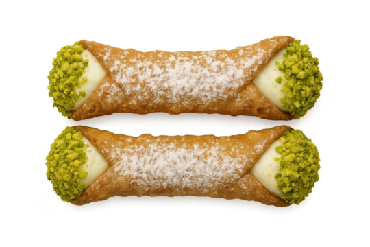 Sicilian Cannoli – Crispy pastry tubes filled with sweet ricotta cream isolated on white background. Suitable for marketing or business purposes. PNG file