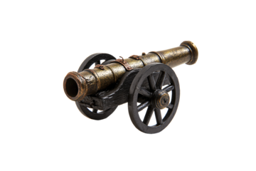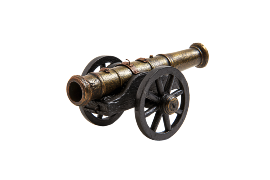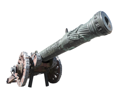 Side View of Antique Cannon with Ornate Brass Detailing, Isolated Transparent Background PNG