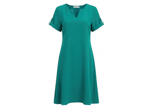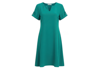 Simple teal green short sleeve vneck casual summer dress for woman isolated on transparent background