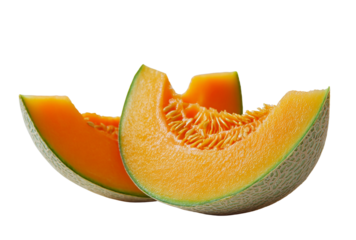 cantaloupe melon slices on transparent background.