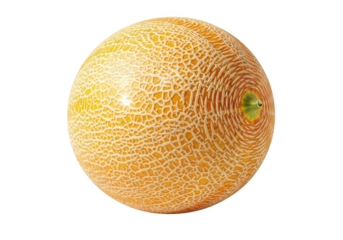 A ripe and juicy cantaloupe melon isolated on a white transparent background, highlighting its textured skin.
