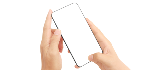 Hands holding mobile phone with transparent screen amidst colorful flowers