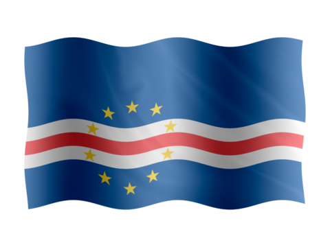 cabo verde flag waving in wind isolated on transparent png