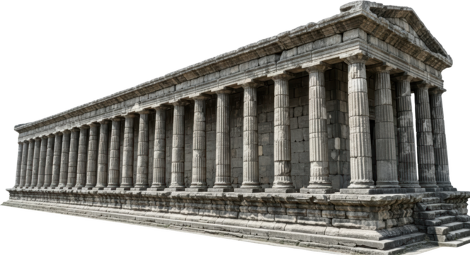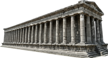 Ancient Greek temple facade with doric columns and stone stairs isolate