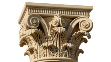 Ornate Corinthian capital isolated PNG on transparent background, architectural detail with acanthus leaves and volutes for design projects