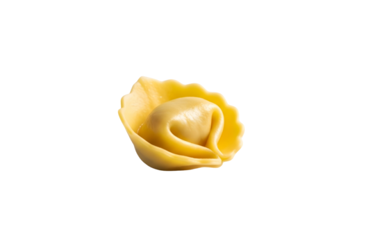 Fresh uncooked single tortellino pasta isolated product shot on white background