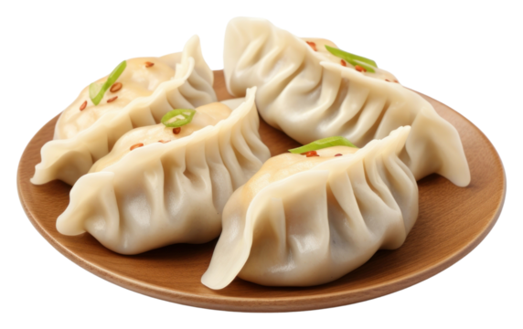 Set of restaurant ravioli with sauce in a plate isolated on transparent background PNG