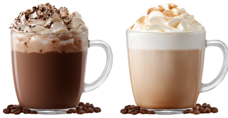 PNG hot chocolate and cappuccino coffee, isolated on a transparent