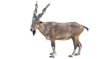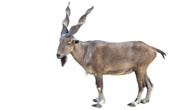 Markhor (Capra falconeri) Pakistan National Animal Isolated on a White Background with Copy Text Space. Iconic Wild Goat Element for Wildlife Posters, Cultural Themes, and Nature-Inspired Designs. PNG