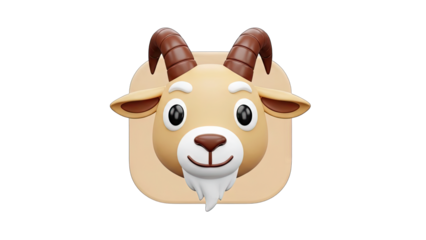 3D render Capricorn zodiac sign symbol colored glass icon with transparent background PNG
