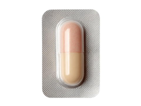 Pink and beige capsule in silver blister pack pill medicine, Isolated, Transparent Png