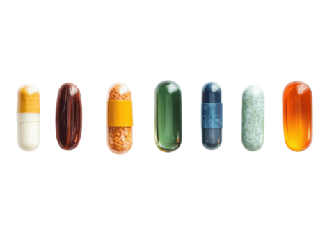 Pack of Colorful Capsules Pharmaceutical Medicine Healthcare and Wellness against transparent Background