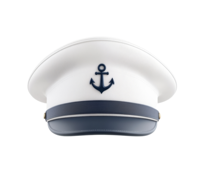 Captain's Hat with Nautical Badge on White, Marine Fashion Accessories, PNG Transparent