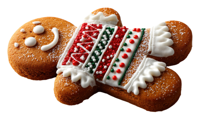 Gingerbread Man: A whimsical gingerbread man, a festive treat, adorned with intricate icing details. Embracing the warmth of the season and capturing the joy of festive food.