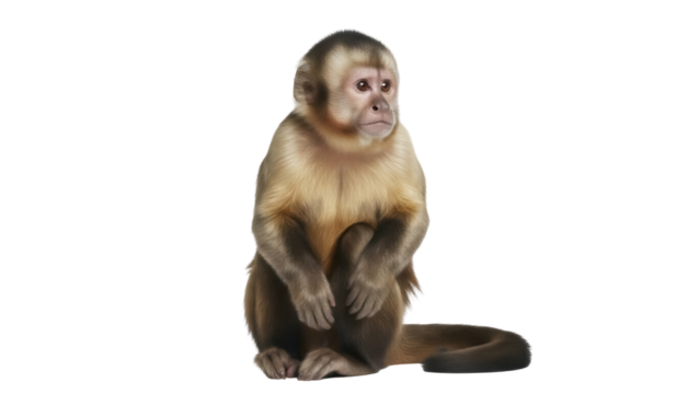 Capuchin monkey sitting and looking up isolated on transparent background