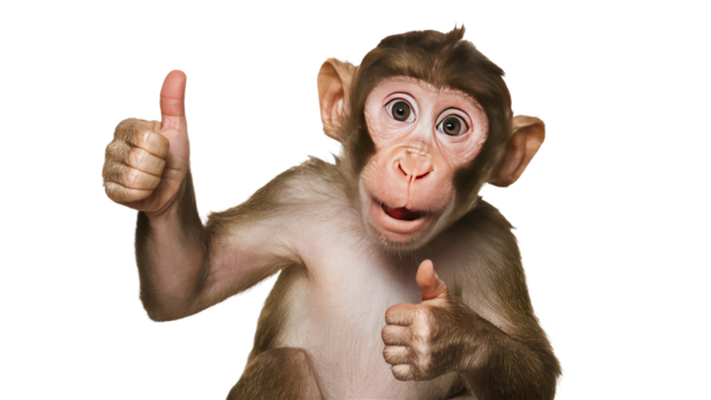 A monkey giving a thumbs up isolated on white background.AI GENERATED
