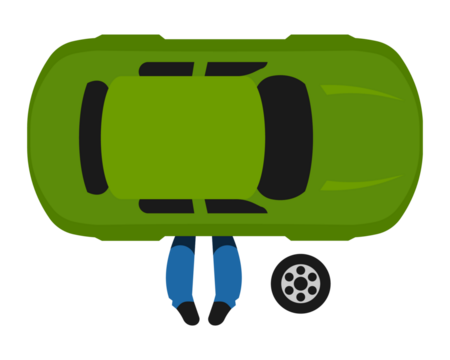 Transparent png car lift with tires for auto mechanics