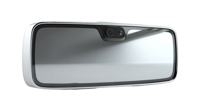 A glossy car side mirror with a blank white display for mockup or branding. Isolated on transparent background, PNG.
