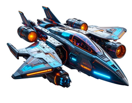 Angled View of Modern Sci-Fi Spaceship with Neon Accents, Isolated PNG