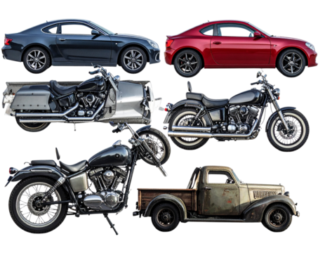 Transportation Illustration Pack – Sports Cars, Motorbikes, and Vintage Classics PNG