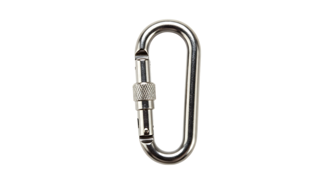 Shiny metal carabiner isolated on transparent background